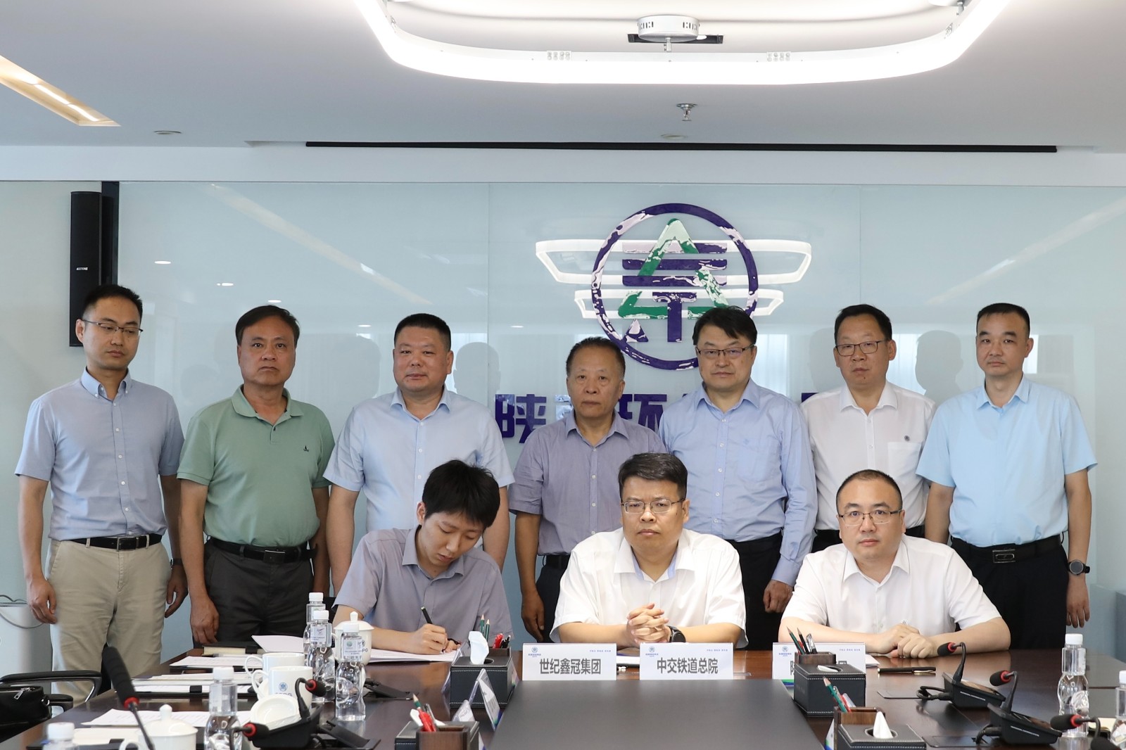 陜西環(huán)保集團副總經(jīng)理李釗、西安鐵道院董事長張曉榮、世紀(jì)鑫冠集團法人代表、副總裁張宏椿代表三方簽訂了戰(zhàn)略合作框架協(xié)議。世紀(jì)鑫冠集團總裁盧少輝,陜西環(huán)保集團、中交鐵道總院、世紀(jì)鑫冠集團總部有關(guān)部門負(fù)責(zé)人等參加。